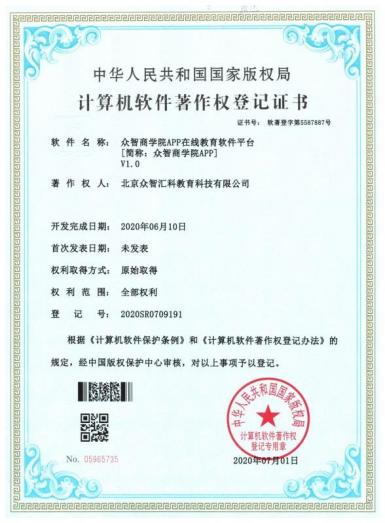 应用同步上架苹果、华为、荣耀、小米等主流应用市场。拥有智培盟APP、众智商学APP、专属软件著作权。